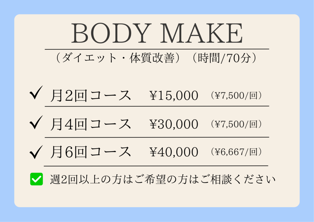 ↑BODYMAKEプラン「週4」「週6」コースのみ¥3,000引き